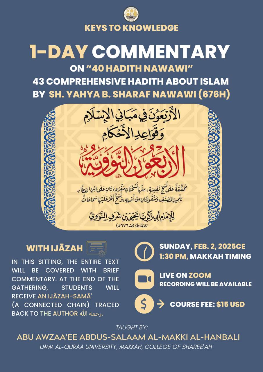 Upon finishing the class, students will receive an Ijāzah as-Samā’ (a connected chain) linked to the author.
